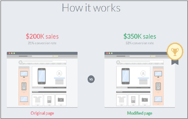 有各种A/B测试工具,允许营销专业人士使用点击编辑器创建其网页的多种变体。 它不需要任何HTML知识,可以检查哪个版本产生最大的转换率或销售额。