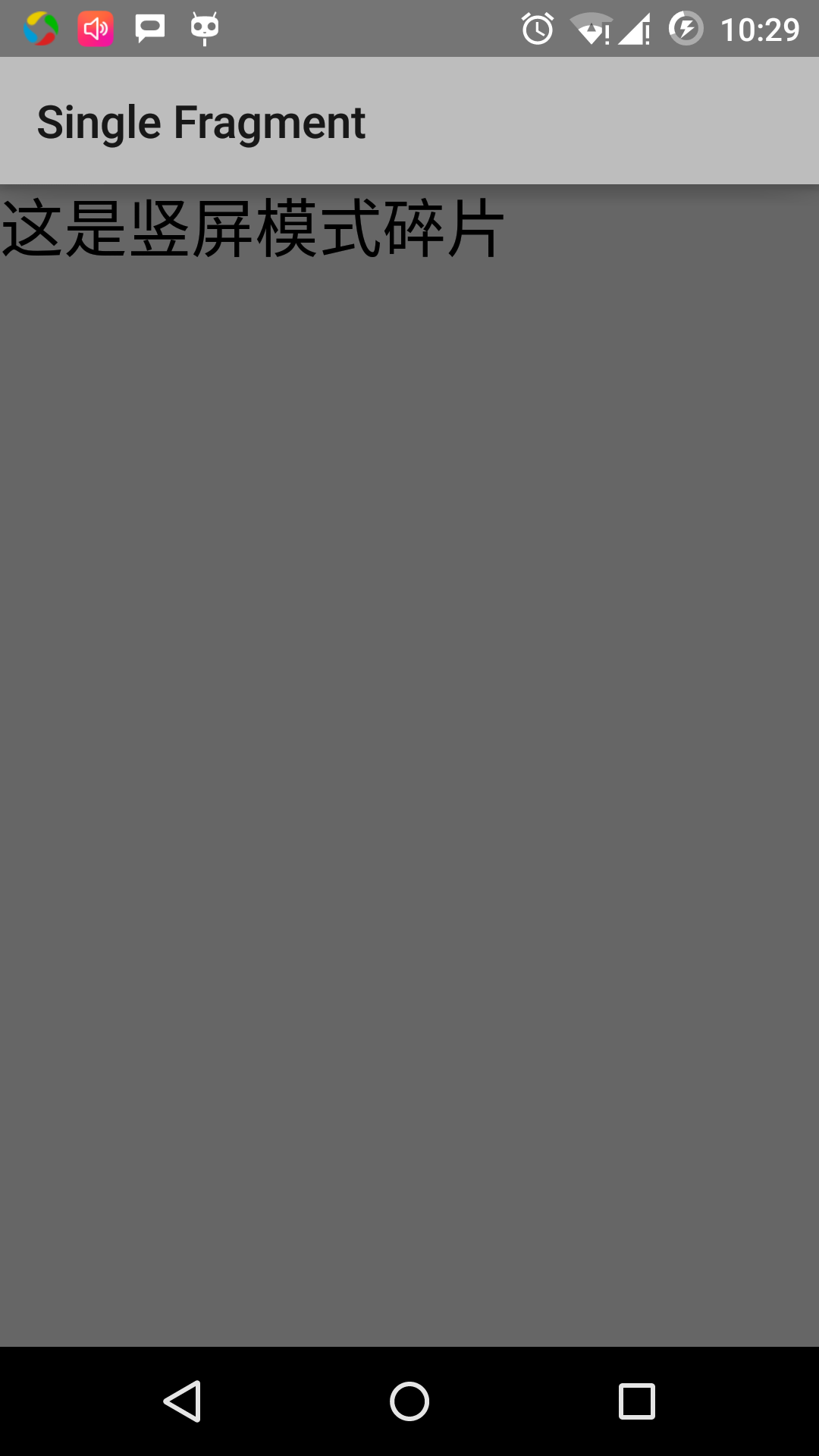 <?xml version="1.0" encoding="utf-8"?> <resources> <string name="app_name">Single Fragment</string> <string name="hello_world">Hello world!</string> <string name="action_settings">Settings</string> <string name="landscape_message">这是横屏模式碎片</string> <string name="portrait_message">这是竖屏模式碎片</string> </resources>