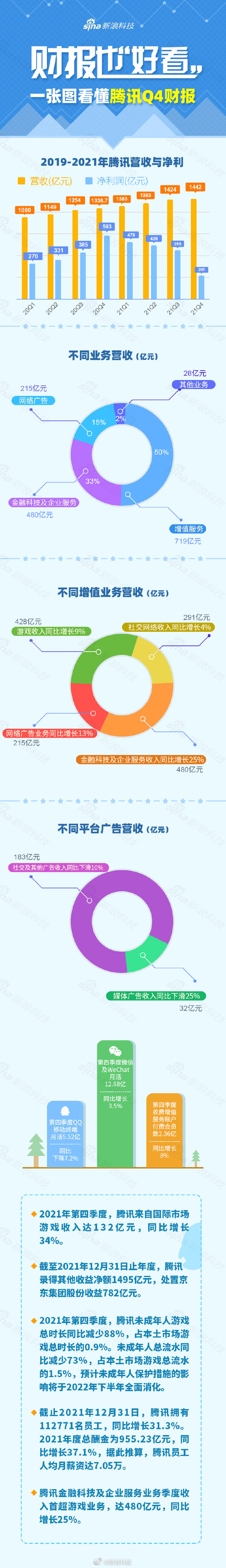 2021年全年,腾讯营收5601.18亿元,同比增长16%,No-IFRS净利润1237.88亿元,同比增长仅1%,创近十年来的最低值。