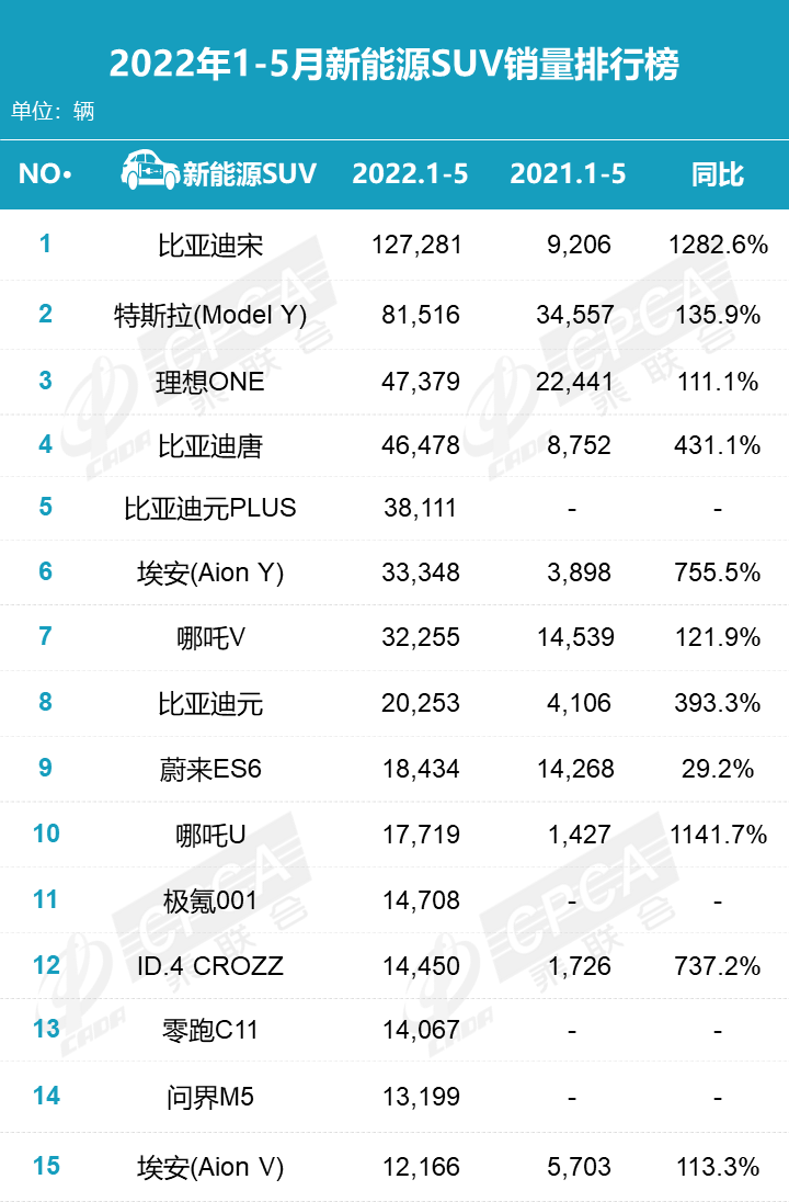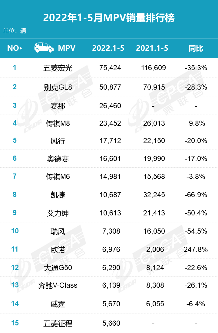 中国汽车流通协会:2022年5月零售销量排名快报