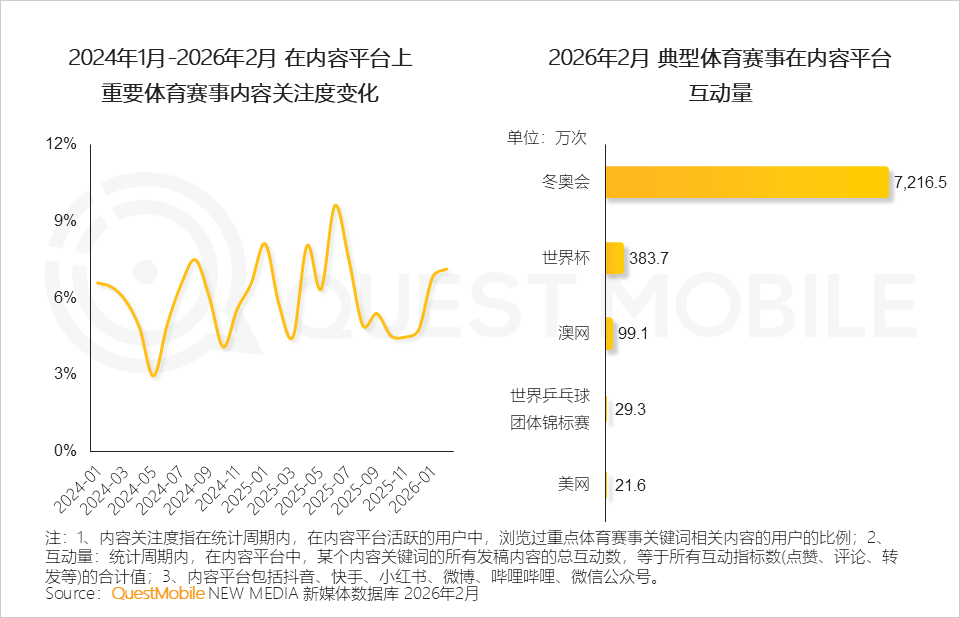 如2月冬奥会期间,相关话题在内容平台讨论互动量达7,216万次。