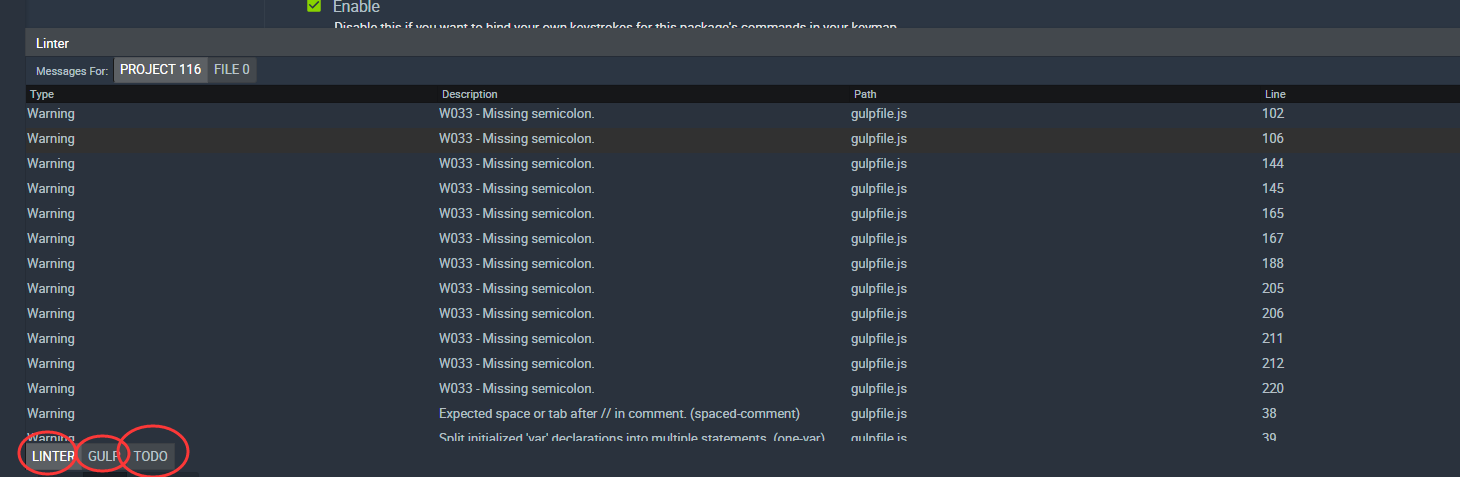 - ctrl-k ctrl-g: 创建一个新的 gulp 面板