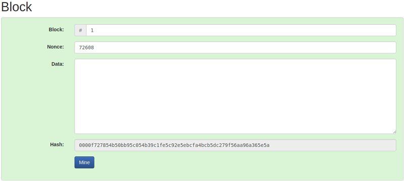 ,并且块编号对应于我们的数据。因为Hash有四个前导零,所以它是一个有效的块。