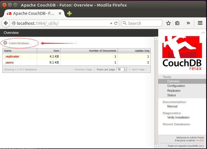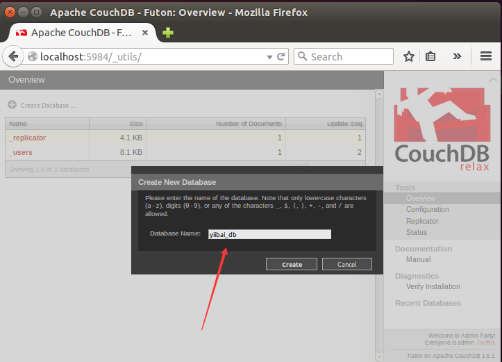 CouchDB创建数据库