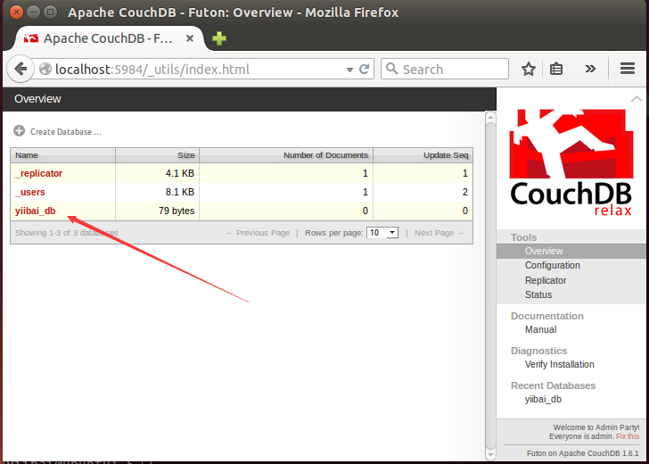 使用Fauxton创建数据库
