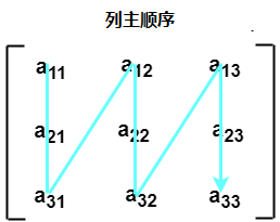 首先,数组的第一列完全存储到存储器中,然后数组的第二行完全存储到存储器中,直到数组的最后一列。
