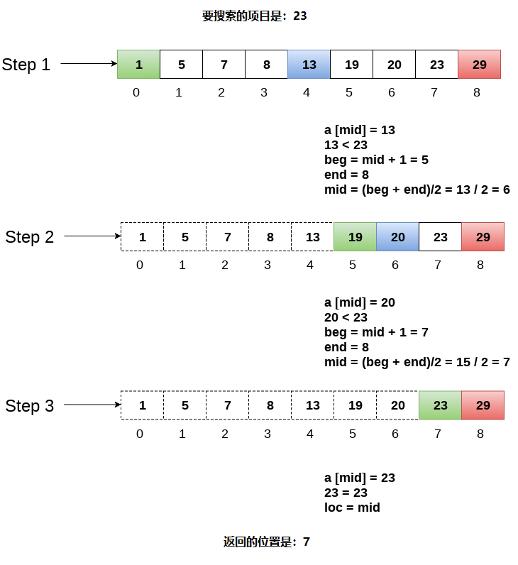 考虑有一个数组arr = {1,5,7,8,13,19,20,23,29}