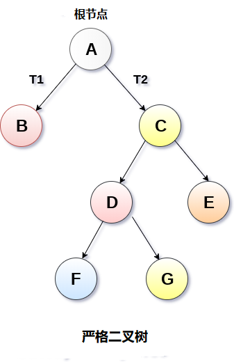 在严格二叉树中,每个非叶节点包含非空的左和右子树。 换句话说,每个非叶节点的等级将始终为2
