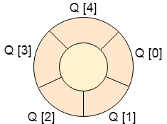 这个问题的解决方案之一是循环队列。在循环队列中,第一个索引紧跟在最后一个索引之后。 可以考虑循环队列,如下图所示。