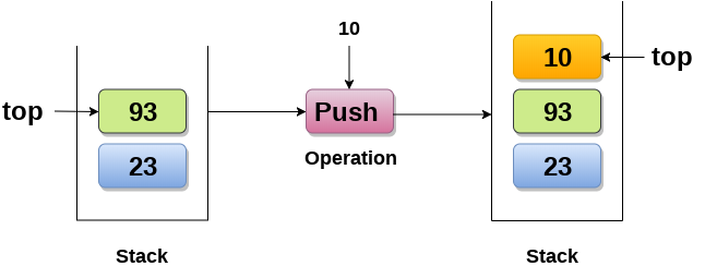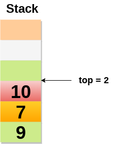 。 在下面的堆栈中,添加第一个元素后,top = 2