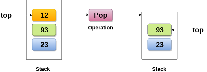 2.弹出 :从堆栈中删除元素,如下图所示: