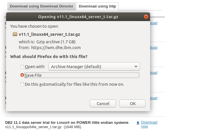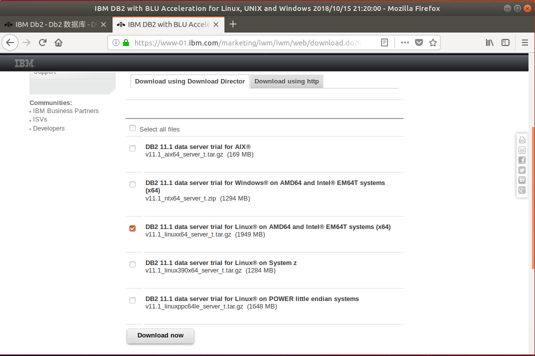 要安装DB2数据库,首先需要从 www.ibm.com 下载DB2 Server试用版或购买产品许可证,可以在此看到两个可供下载的独立DB2服务器: