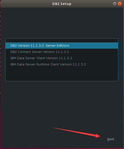 选择安装的服务器产品,这里选择DB2 Version 11.1.33 Server Editions,如下图所示: