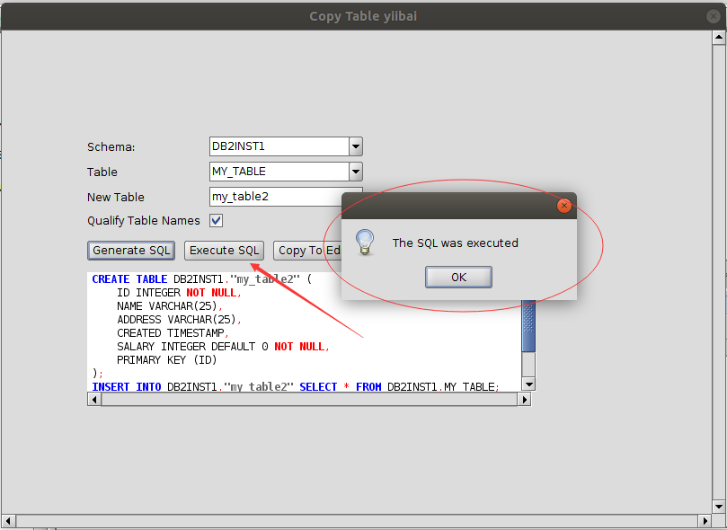 DB2 RazorSQL 复制(Copy)选项用于将表复制到新表中。例如:将“my_table”复制到新表“my_table2”中。