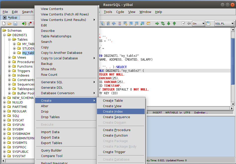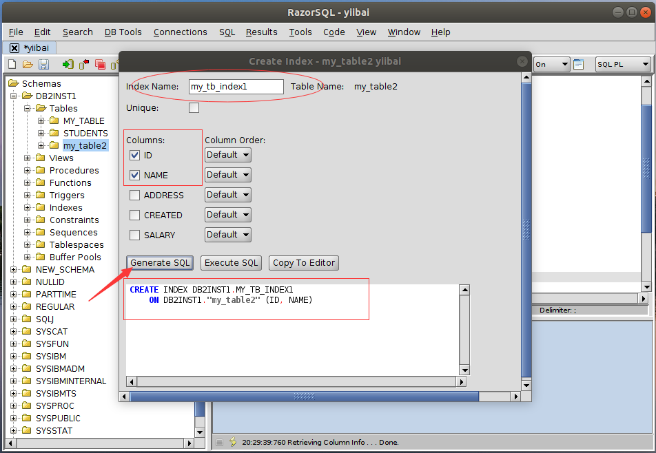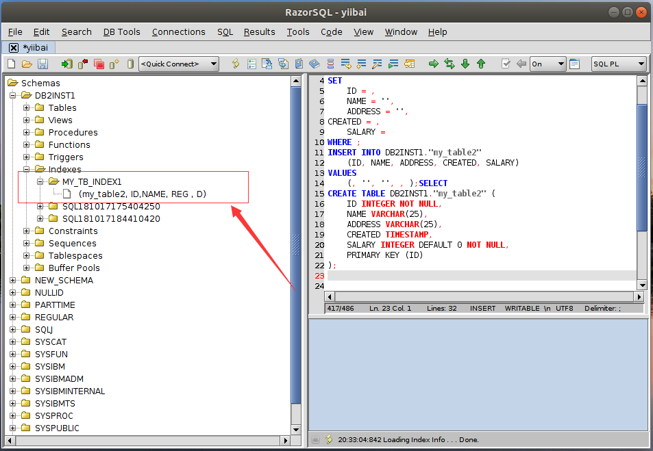 用于为表创建索引。 索引是一组指针,它指的是MDC或ITC表中的表块中的行,XML存储对象中的XML数据,这些XML数据在逻辑上按一个或多个键的值排序。 索引用于提高查询数据的速度以及有效地对数据进行聚类和分区。