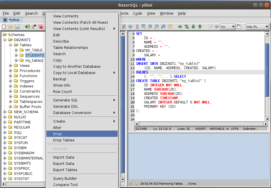 命令用于从数据库和不同模式中删除表。参考以下步骤: