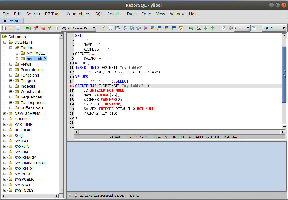 DB2 RazorSQL生成DDL是用于创建用于创建该表的SQL命令。在DB2 RazorSQL生成DDL,可参考以下操作: