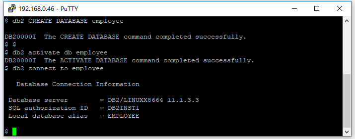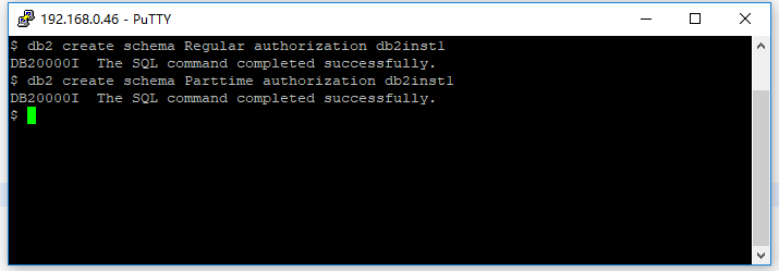 db2 "create table Regular.employee (id integer, name varchar(20), job varchar(20), join_date date, salary integer)"