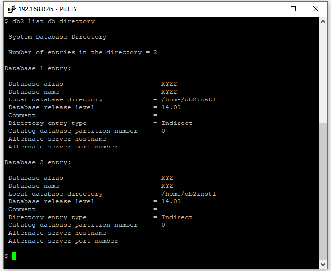 TCP/IP Service name (SVCENAME) = db2c_db2inst1
