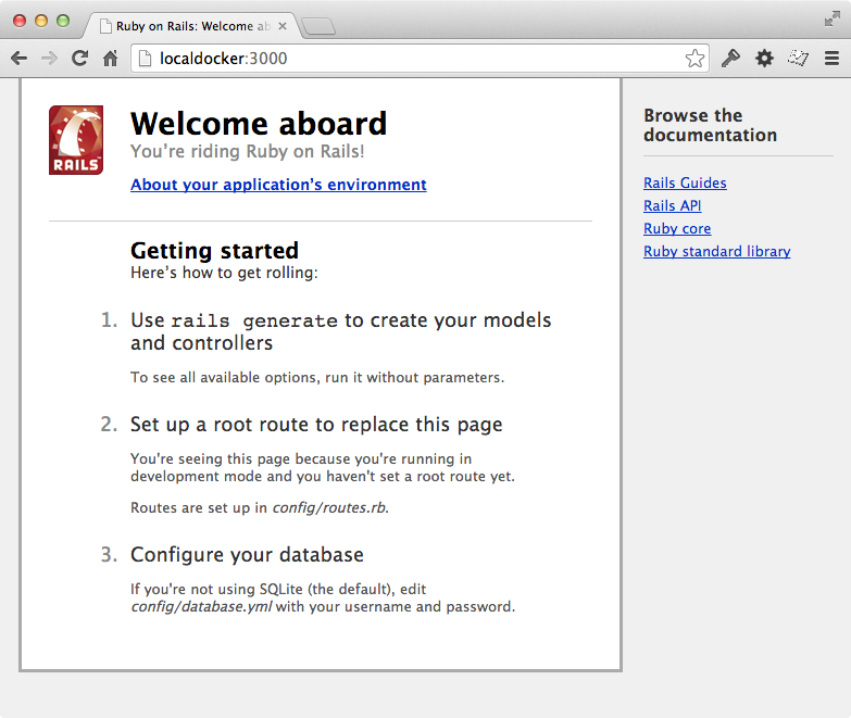 应用现在就可以启动了,但配置还未完成。Rails 默认读取的数据库目标是 localhost