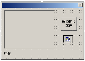 2.从控件箱中拖一个文字标签、按钮和图片框,设置各组件的位置与属性,然后拖一个通用对话框控件到任意位置,最终效果如图: