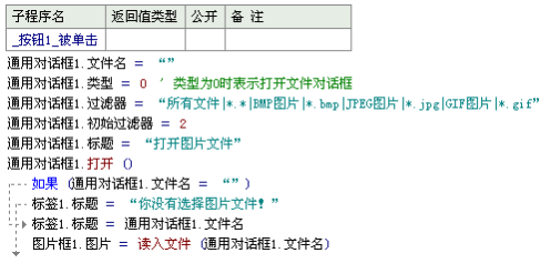 在这里,我们单击“选择图片文件”按钮时,打开的对话框默认只显示JPG文件,这是因为在代码: