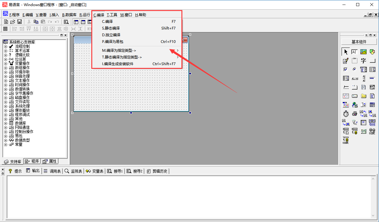 当程序做好之后,我们编译出来别人才能用,一般选择静态编译即可,试用版是不支持编译的。