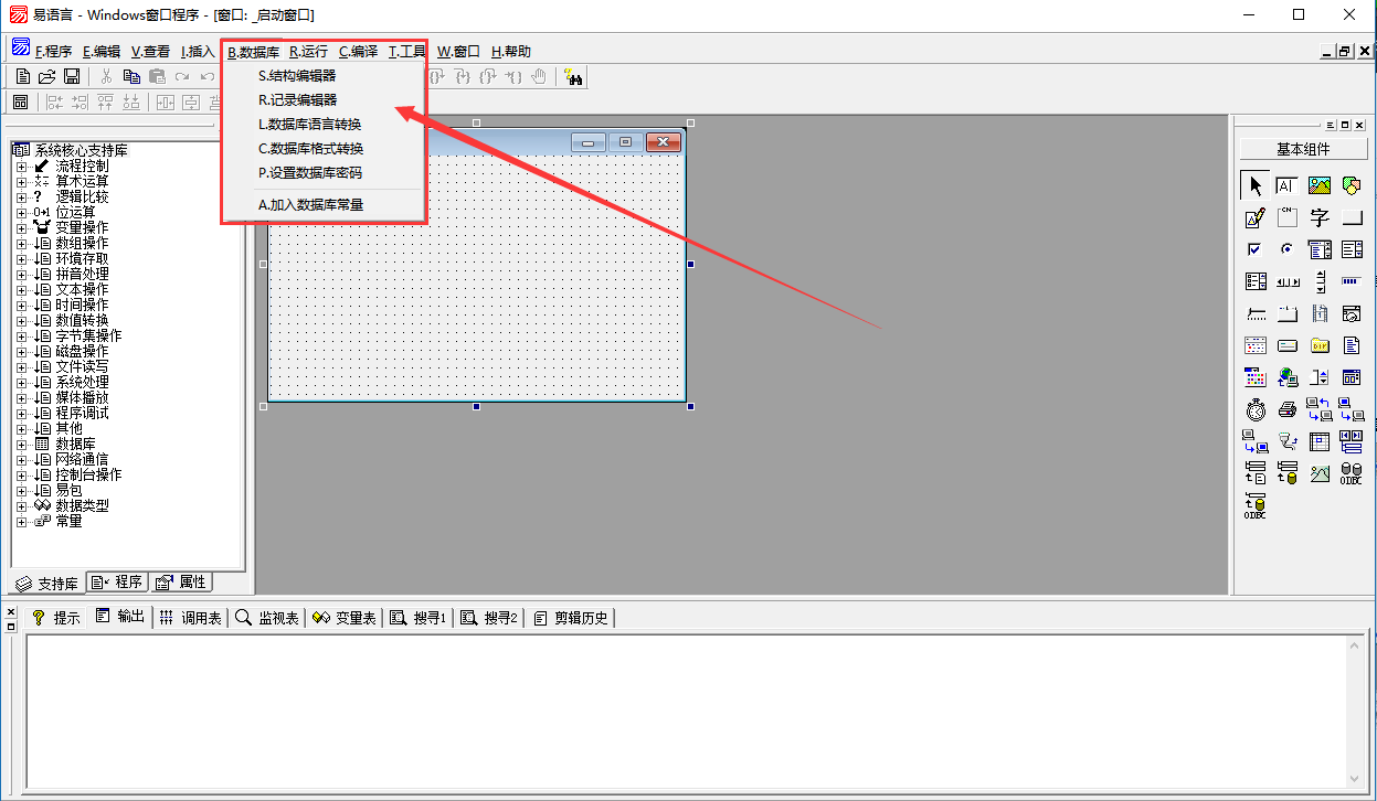 用于对易数据库进行操作。包括创建易数据库的“结构编辑器”和直接编辑易数据库的“记录编辑器”等。