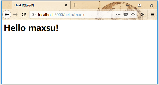 在开发服务器开始运行时,打开浏览器并输入URL为 - http://localhost:5000/hello/maxsu