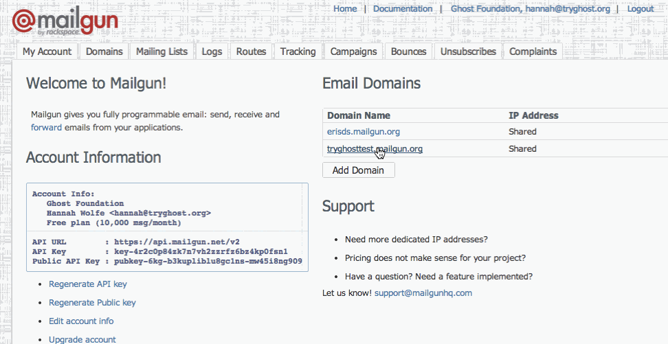 首先,需要你有一个邮件发送服务器的帐号。我们强烈推荐 Mailgun。他们能提供很好的免费入门账户,允许你发送更多的邮件,并且能管理更多的基于邮件订阅的博客。当然你也可以用 Gmail 或者 Amazon SES。
