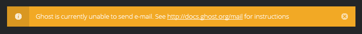 在您第一次运行 Ghost 时您应该在屏幕的顶部看到一个蓝色的通知消息,看起来有点像这样: