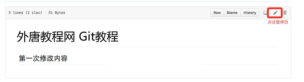 接下来我们在 Github 上点击" README.md" 并在线修改它: