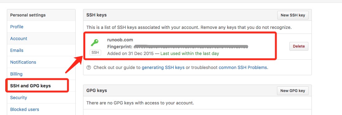 由于你的本地Git仓库和GitHub仓库之间的传输是通过SSH加密的,所以我们需要配置验证信息: