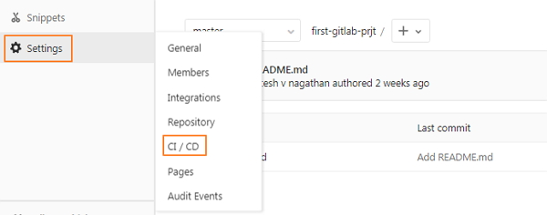 步骤(2): 单击Setting选项卡下的CI / CD选项并展开Runner设置选项: