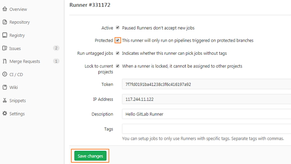 可以锁定某个特定的Runner不被其他项目启用。 为此,您需要注册一个在GitLab的Windows安装部分下的步骤1至12中的GitLab安装章节中介绍的运行器。