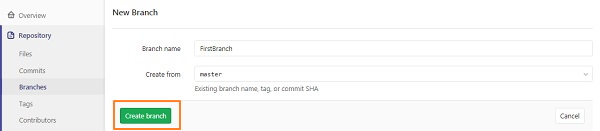 步骤(2): 要创建分支,请单击“Repository” 部分下的 Branches 选项,然后单击“New branch” 按钮。
