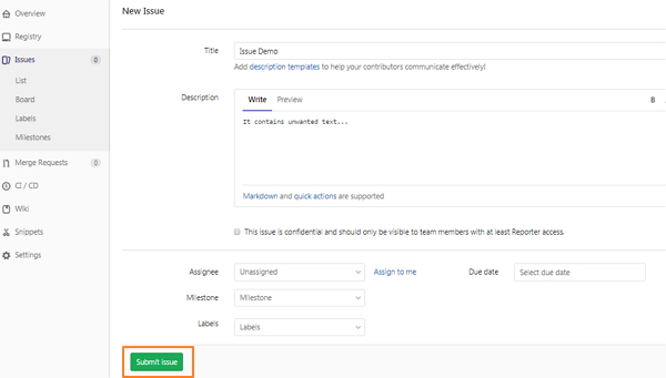 步骤(4): 点击 Submit issue 按钮,您将看到一个问题的概述以及标题和描述,如下所示: