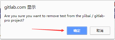 步骤(4): 点击删除按钮后,会弹出一个窗口,提示是否从项目中删除选中的用户。 点击确定按钮删除用户。