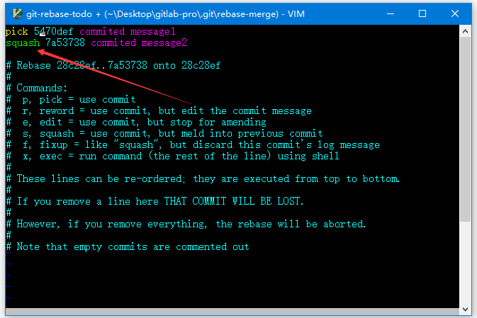 步骤(3): 现在,使用以下命令将上述两个提交压缩到一个提交中: