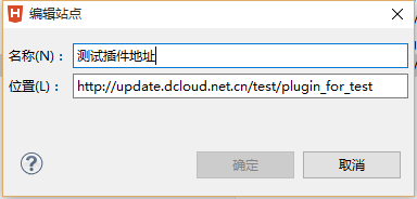 4. 在弹出框的名称随便填,地址填http://update.dcloud.net.cn/test/plugin_for_test如下图