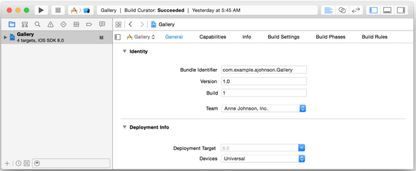 当你成功地完成了之前的任务后,General 面板中 Team 弹出菜单中的错误信息和问题修复按钮将会消失。代码签名配置被成功创建后会展示下方的 General 面板。
