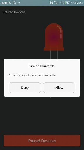 Android应用程序可通过按ON按钮将串行数据发送到蓝牙模块HC-05。蓝牙模块HC-05用于串行通信。它从应用程序接收数据并通过蓝牙模块的TX引脚发送到Arduino的RX引脚。Arduino中上传的代码检查收到的数据。如果接收数据为1