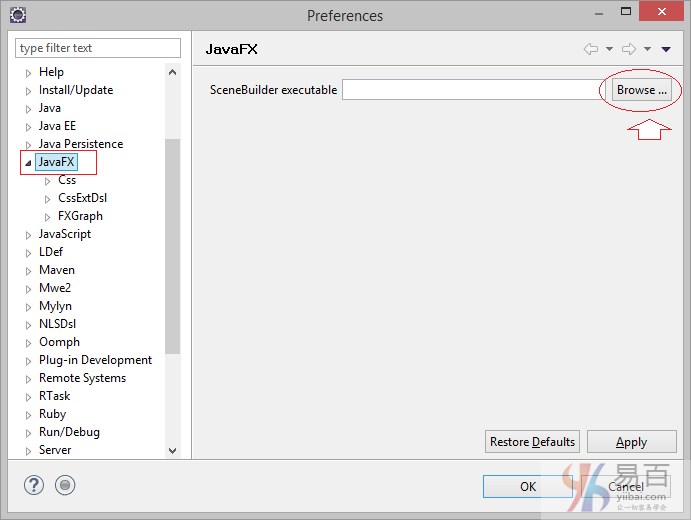 如果还没有安装e(fx)clipse,那么可通过下面的安装e(fx)clipse到Eclipse的指南: