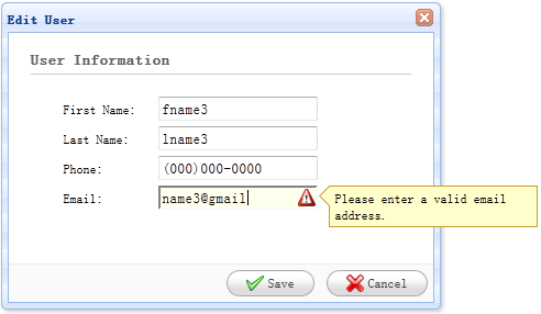 提交表单之前,'onSubmit' 函数将被调用,该函数用来验证表单字段值。当表单字段值提交成功,关闭对话框并重新加载 datagrid 数据。