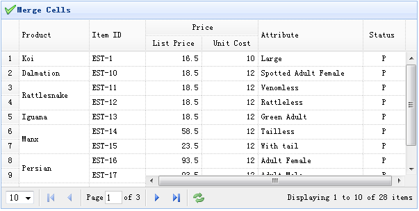 <table id="tt" title="Merge Cells" style="width:550px;height:250px"