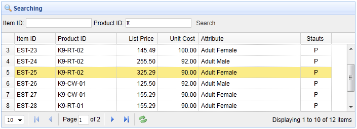 jQuery EasyUI 数据网格 – 添加查询功能
