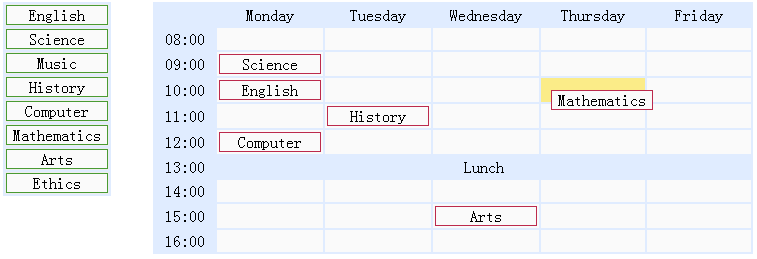 jQuery EasyUI 拖放 – 创建学校课程表