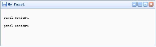 <div id="p" class="easyui-panel" title="My Panel" style="width:500px;height:150px;padding:10px;background:#fafafa;" data-options="iconCls:'icon-save',closable:true, collapsible:true,minimizable:true,maximizable:true"> <p>panel content.</p> <p>panel content.</p> </div>