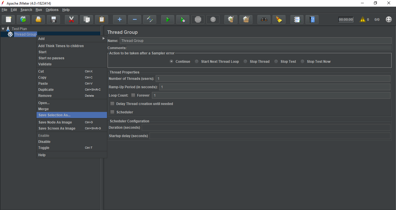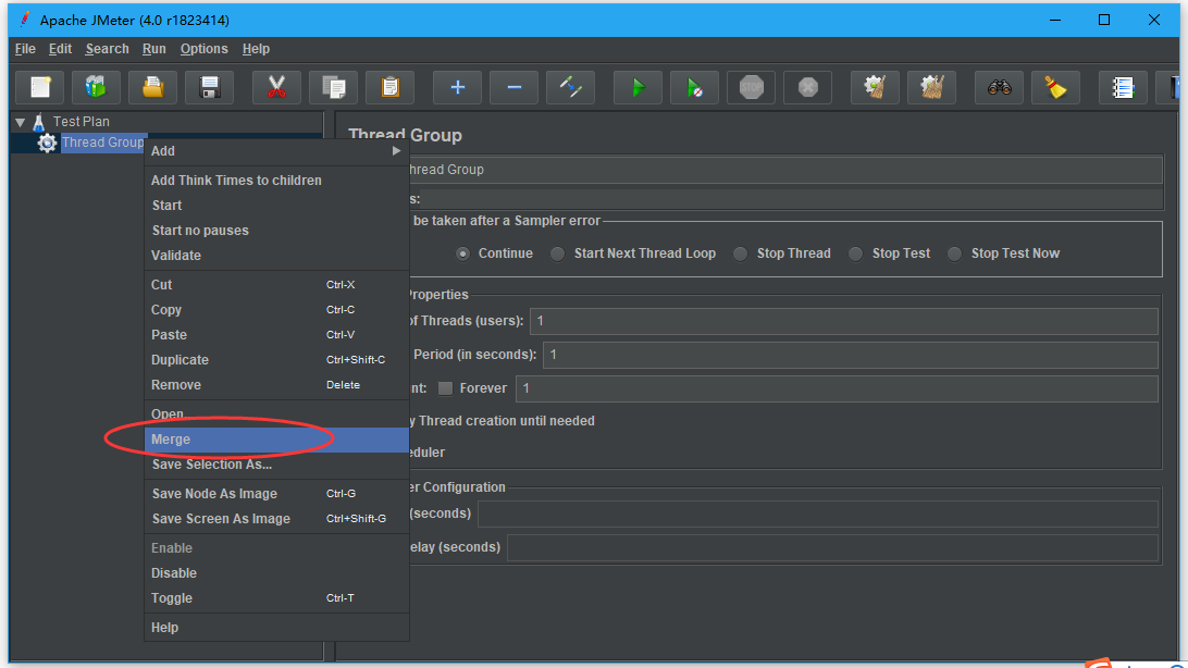 - 要将元素加载到JMeter测试计划树,请选择并右键单击要添加已加载元素的任何树元素。