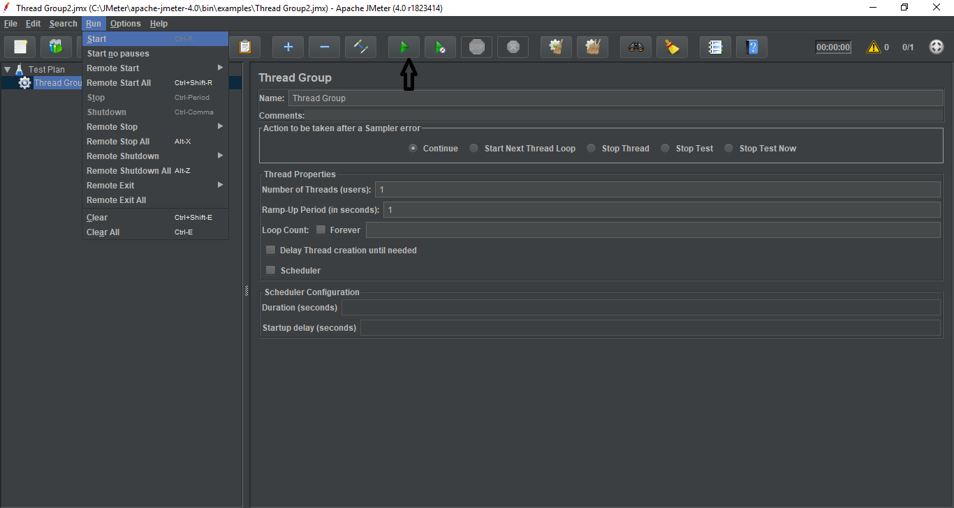 可以通过单击菜单项中的“Start(Control + r)”来运行测试计划,也可以单击绿色播放按钮。